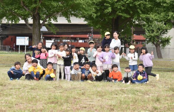 広い園舎・園庭で元気いっぱいに遊ぶこどもたち。元気パワーをいつももらっています。