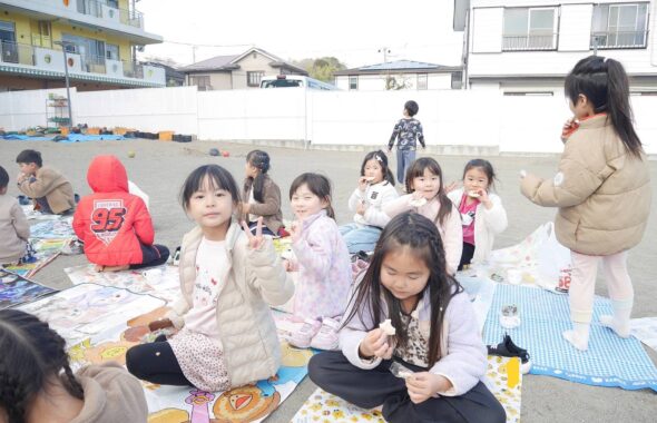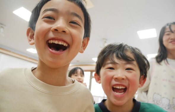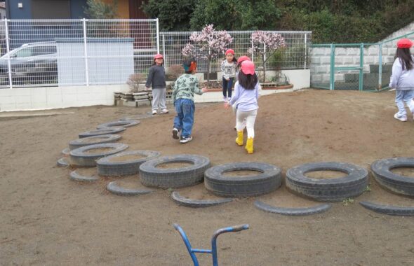 広い園舎・園庭で元気いっぱいに遊ぶこどもたち。元気パワーをいつももらっています。