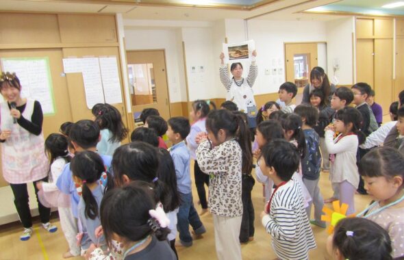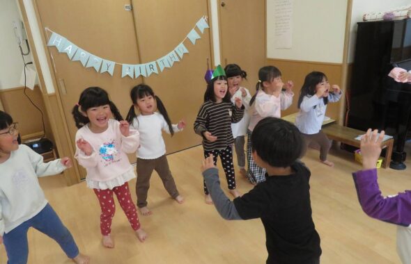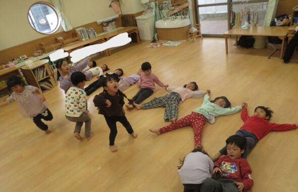 クラスのこどもたちを成長の速度や、生活の様子等でグループにわけて遊びを考えたりお散歩に出かけます。朝早く来るこどもも、ゆっくりやって来るこどもも、たっぷり遊んでおなかがペコペコになること、そしておいしい給食を食べること。生活のもとになるリズムを大切にしています。