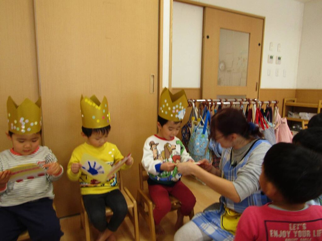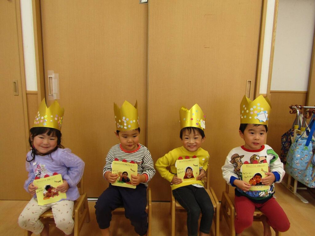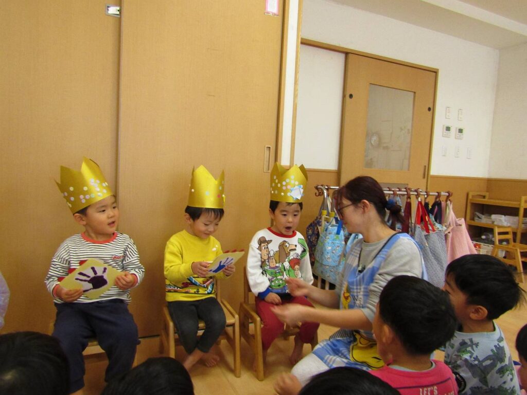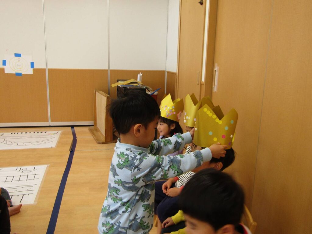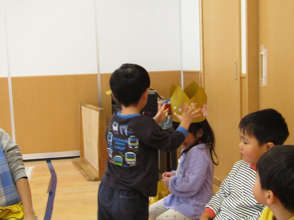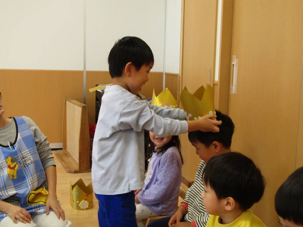 毎月恒例の手作り冠をお友だちに被せてもらい
