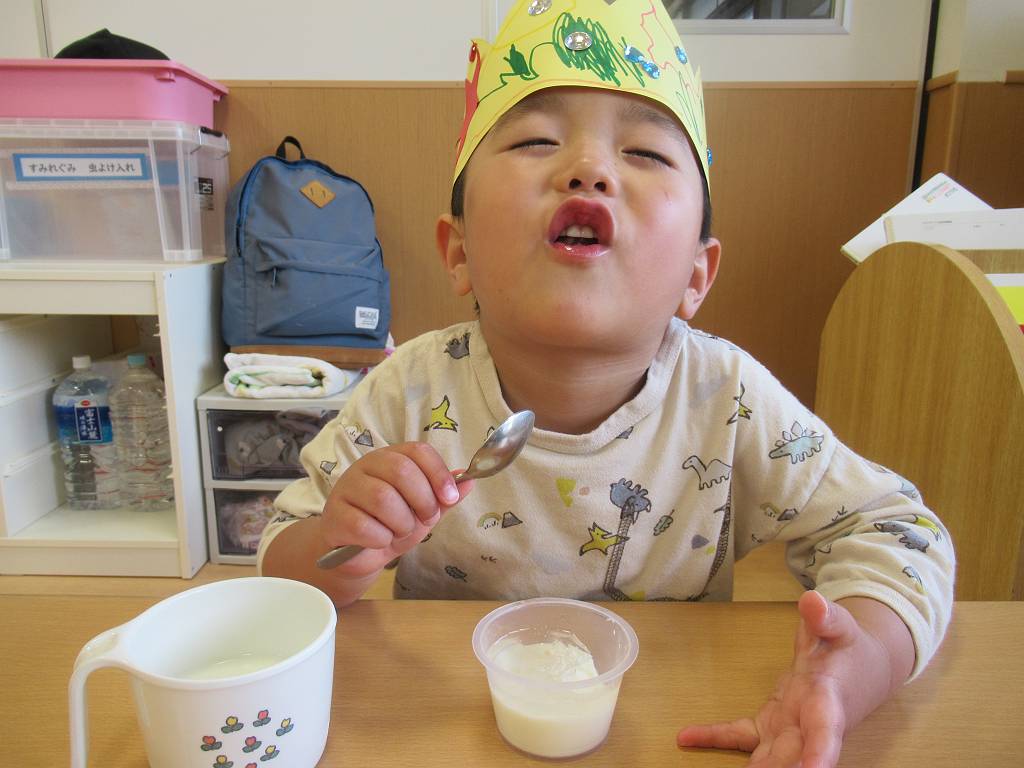 おやつはパンナコッタでした!おいしそうに口に運んでいました。