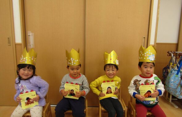 自分で作った冠を仲の良いお友だちに被せてもらいました!
