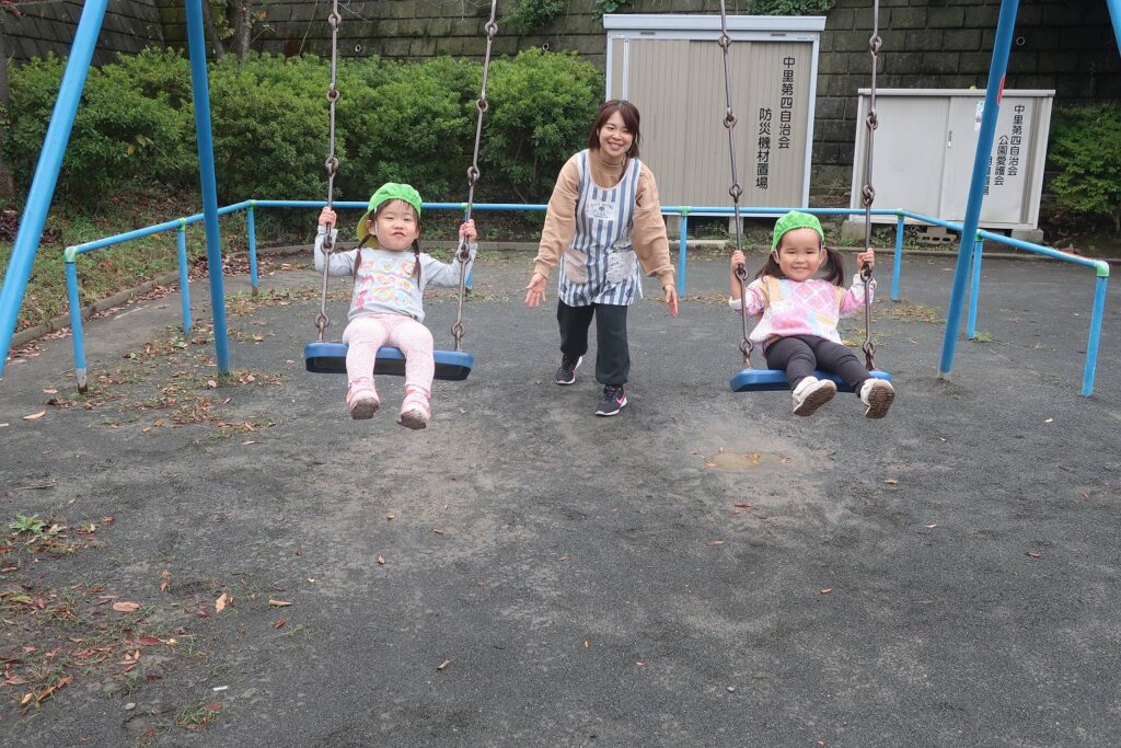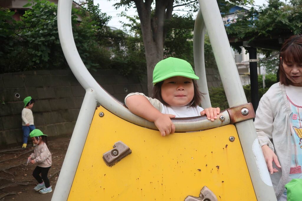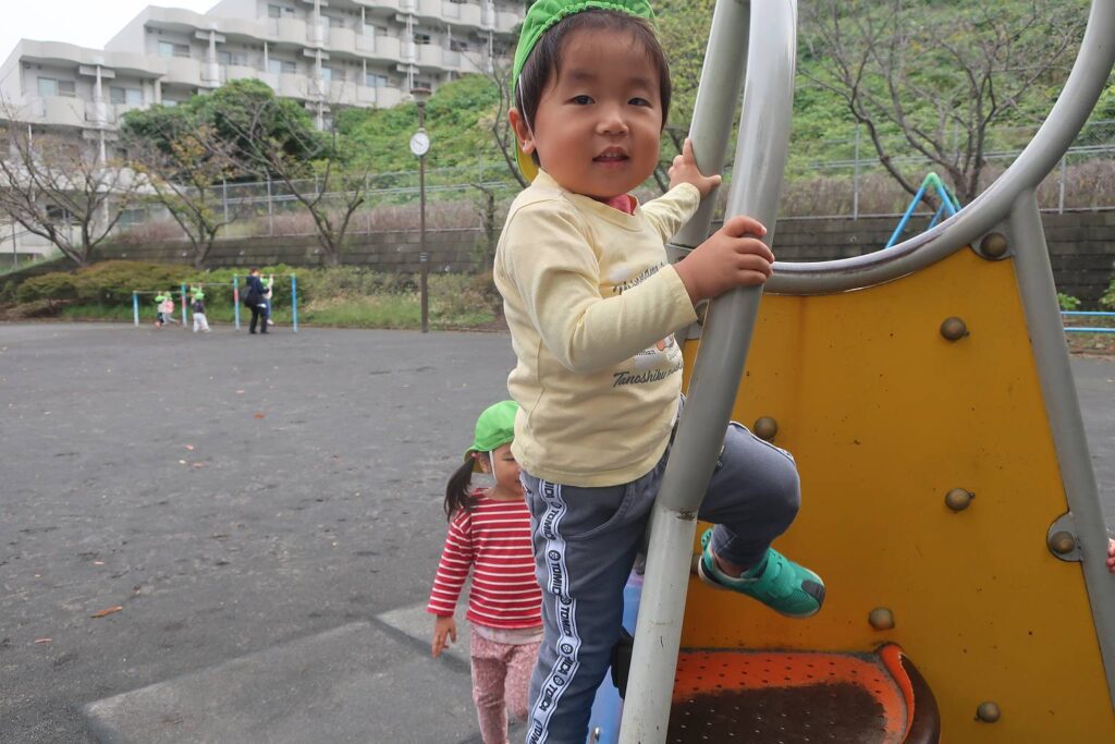 ブランコに乗ったり、ロケット型の遊具に自分で登ることに挑戦したり