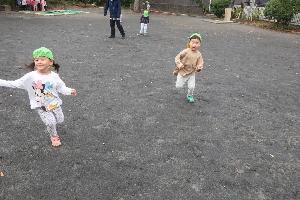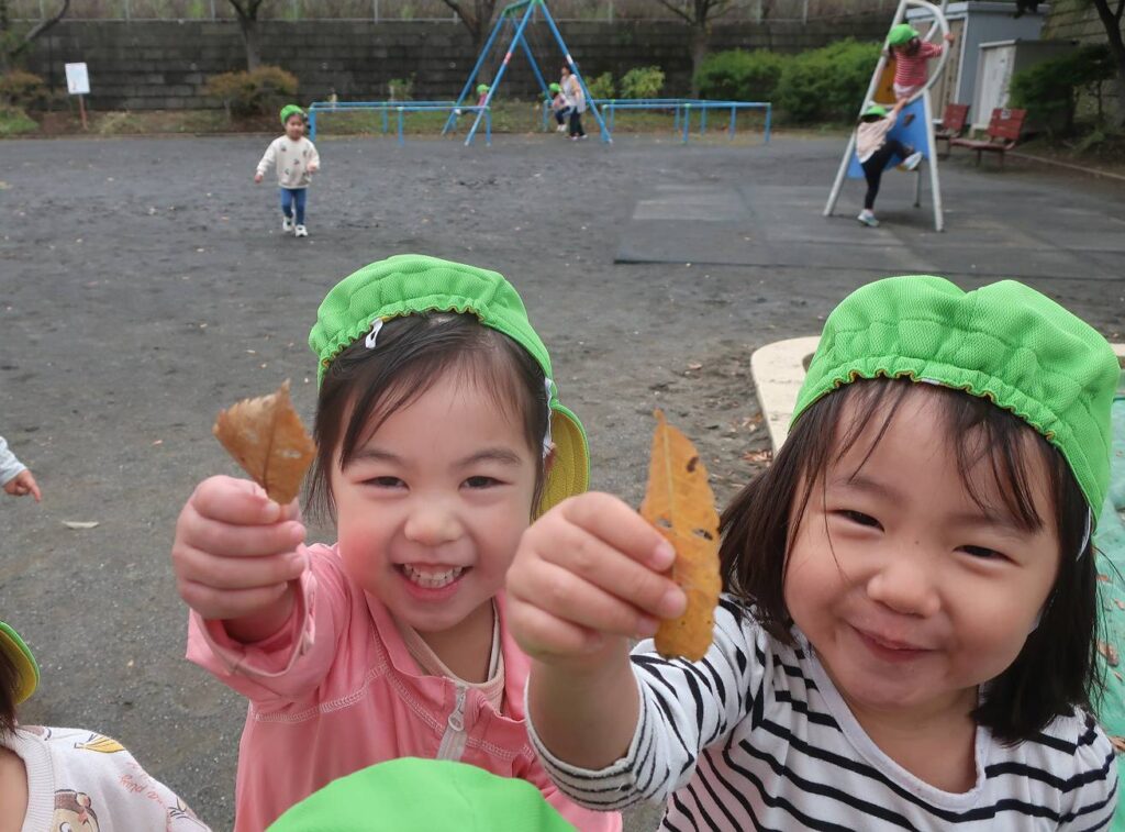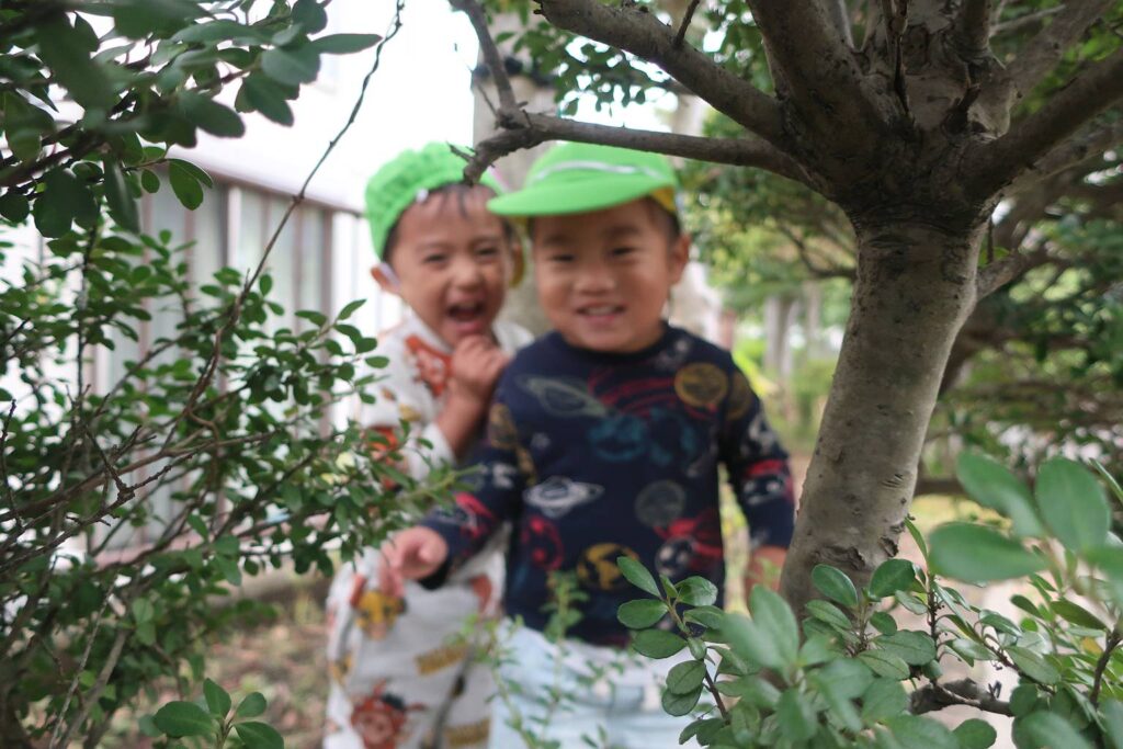 かくれんぼをしたり、おばけの葉っぱを作り、「おばけだぞ~~~」とおばけ追いかけっこもしました。