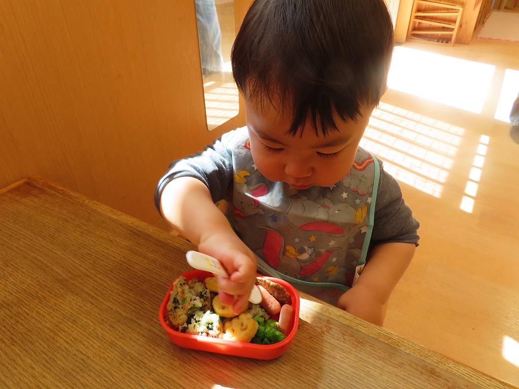 「おいしい~!」と大きなお口でモリモリ食べました!