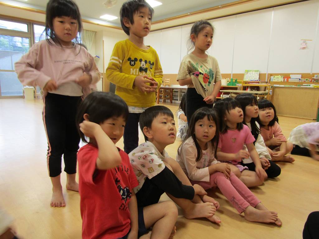 その後、園庭や廊下で「大きな水色のビー玉がばら組に
