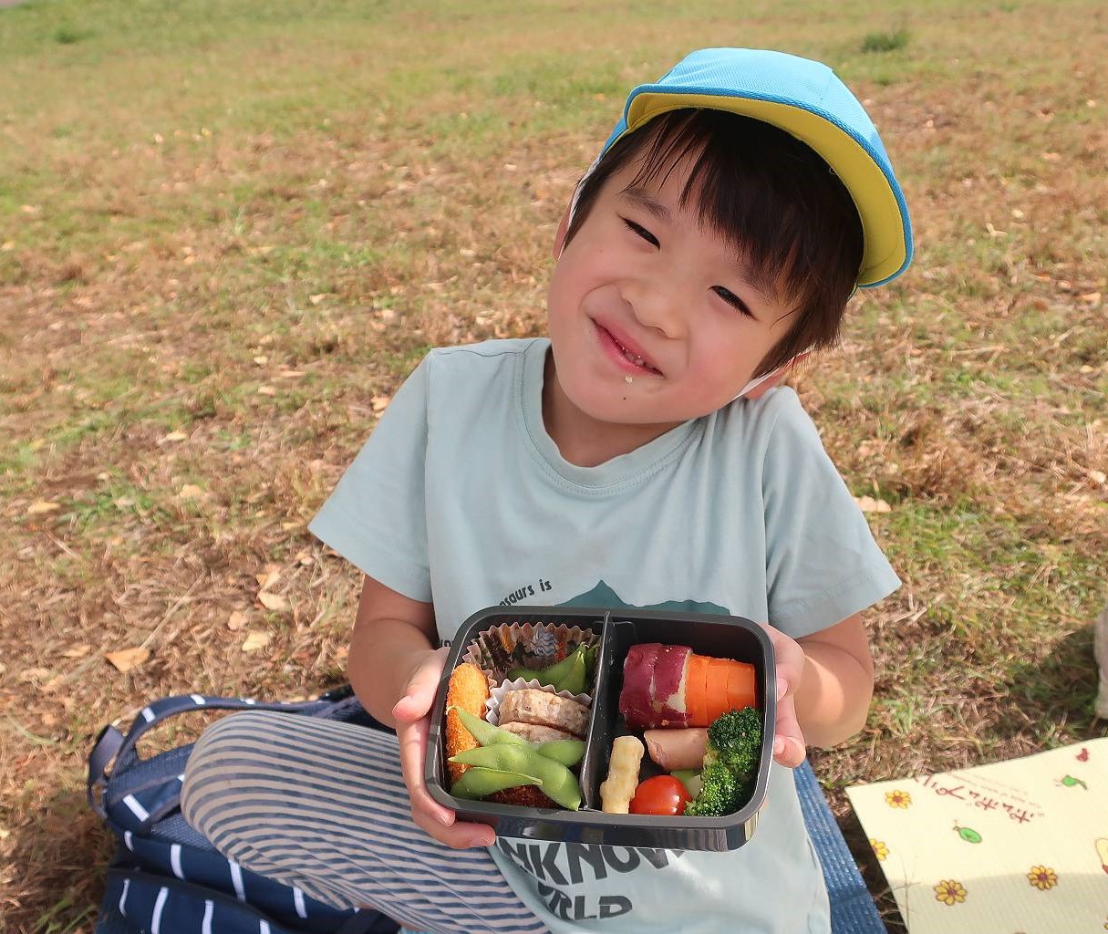 お弁当箱のふたをキラキラした目で開き、自慢のお弁当を「みてみて~!!」と見せてくれました。