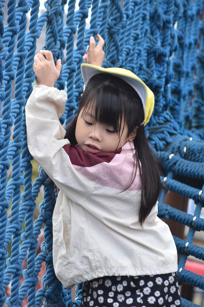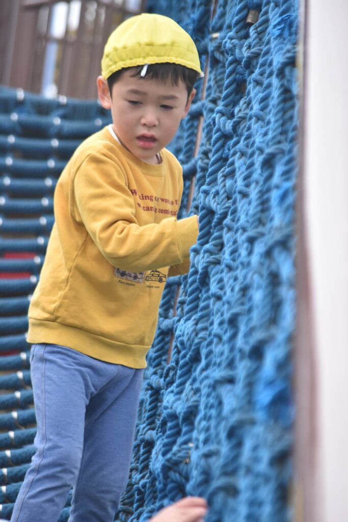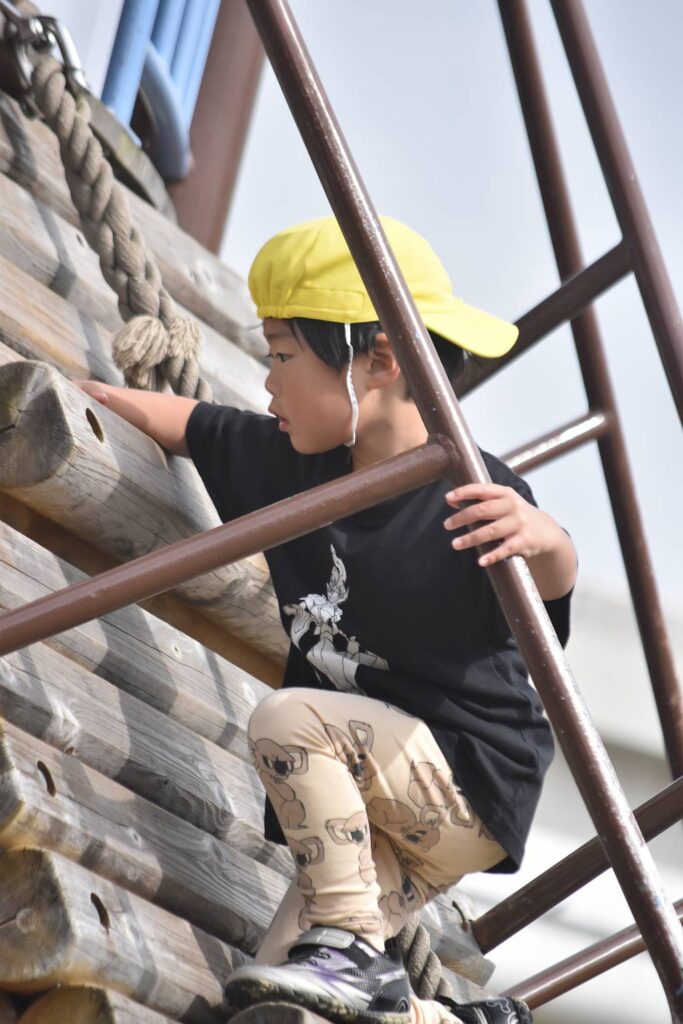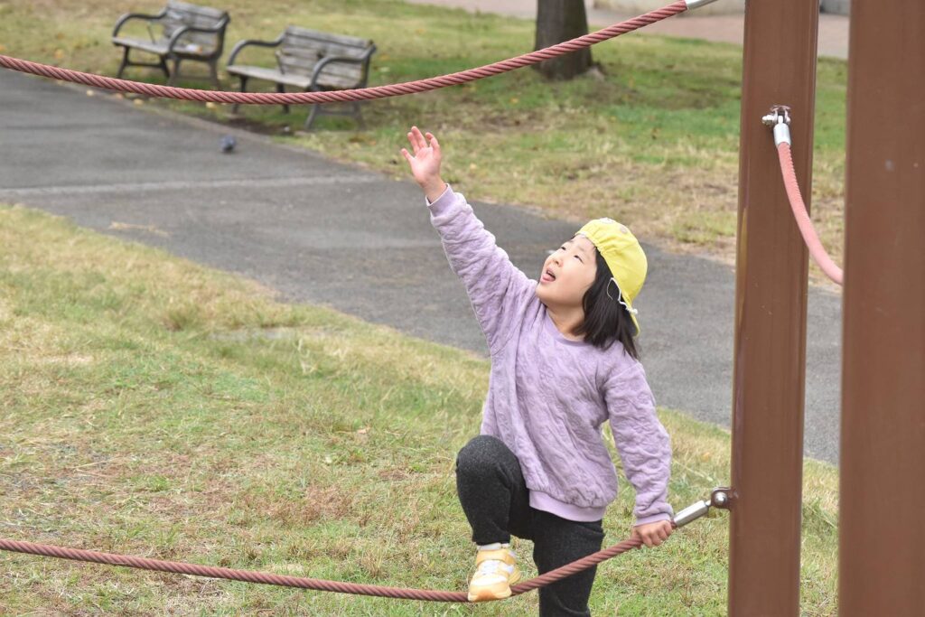 蒔田公園の遊具はとっても大きくて、滑り台以外にも、ロープ渡りや、