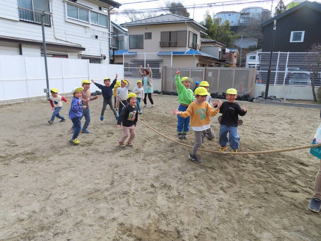 園庭では綱引きをしました!
