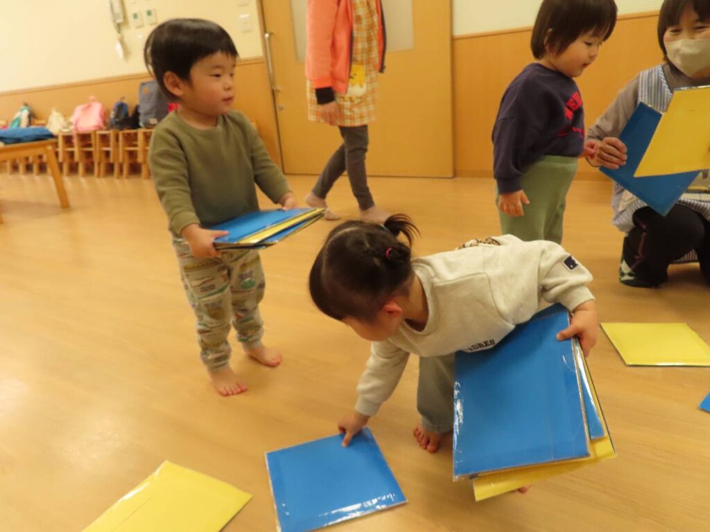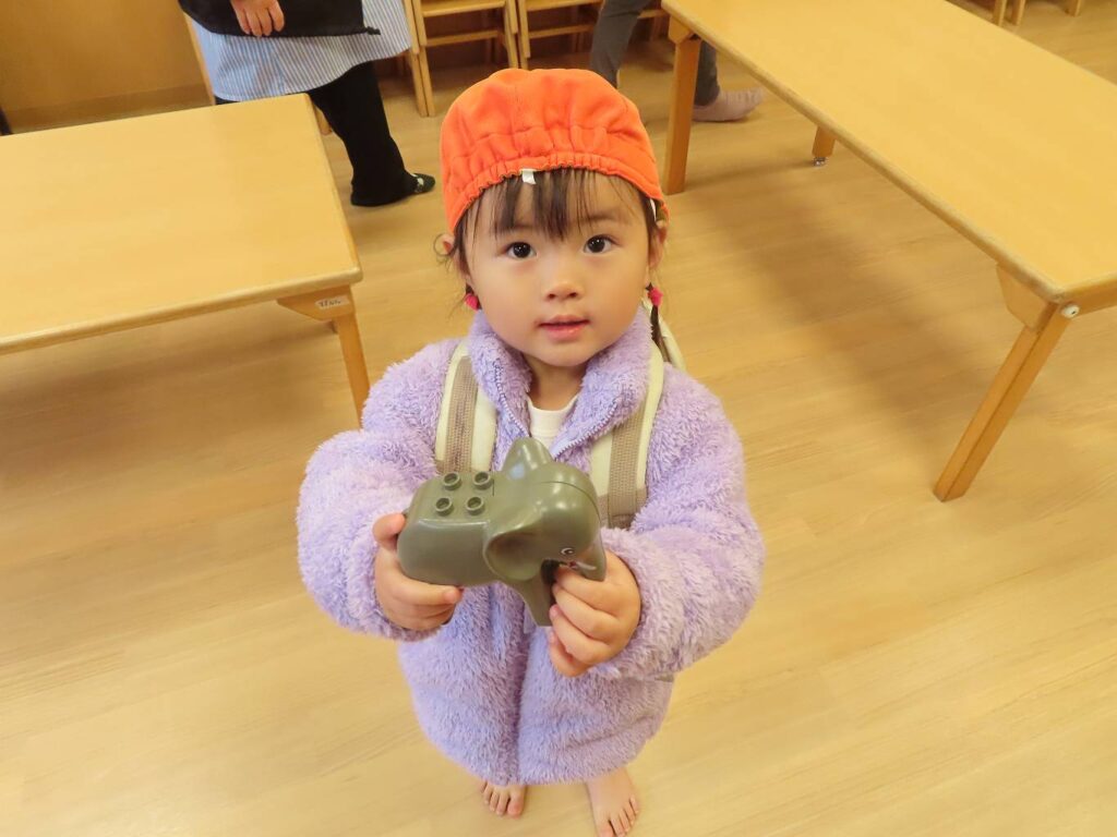 「みてみてー」とお友だちや先生に見せて喜んでいました。