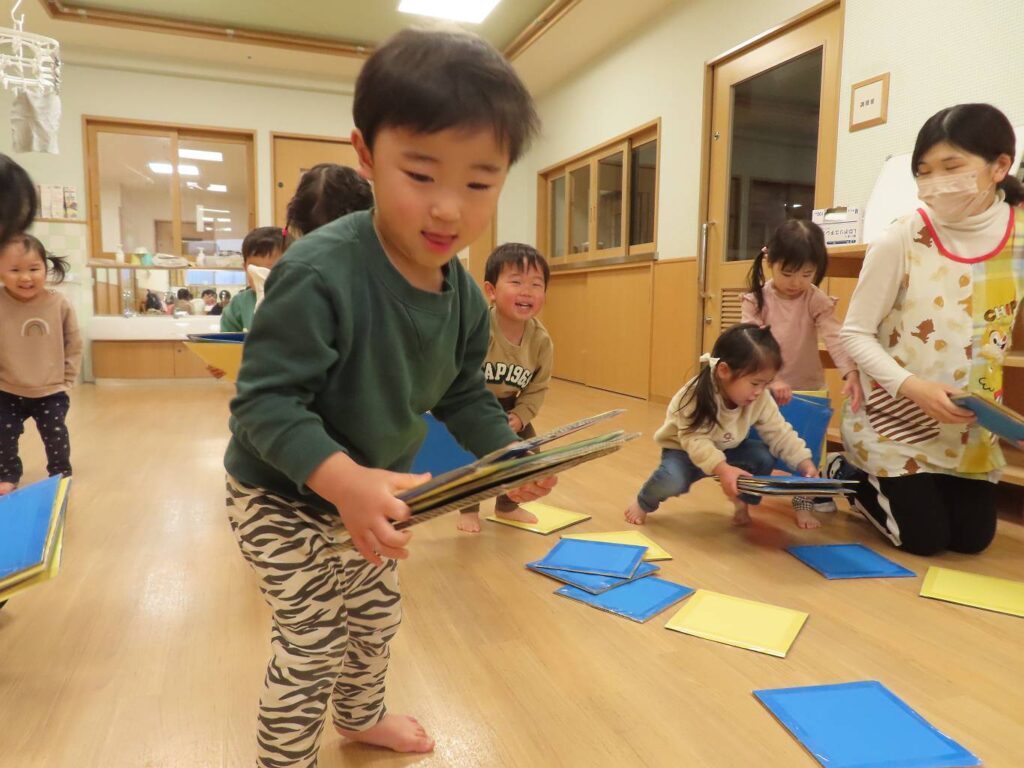 「よーいどん!」となると必死にカードを拾い集めていました!