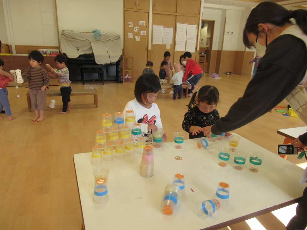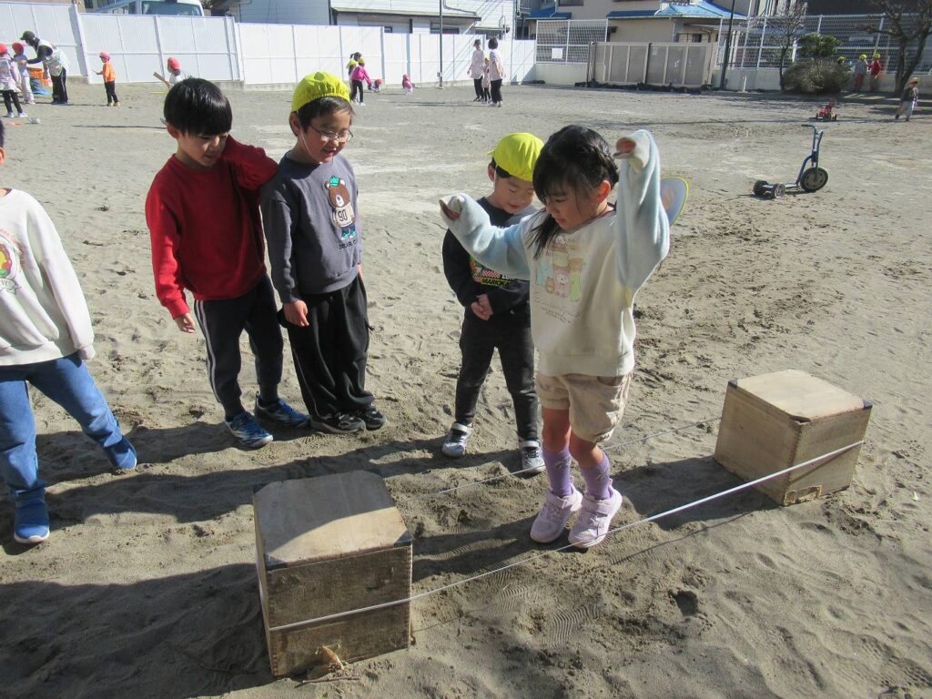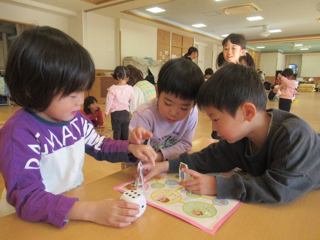 次は部屋と園庭に分かれて、異年齢のお友だちと一緒に