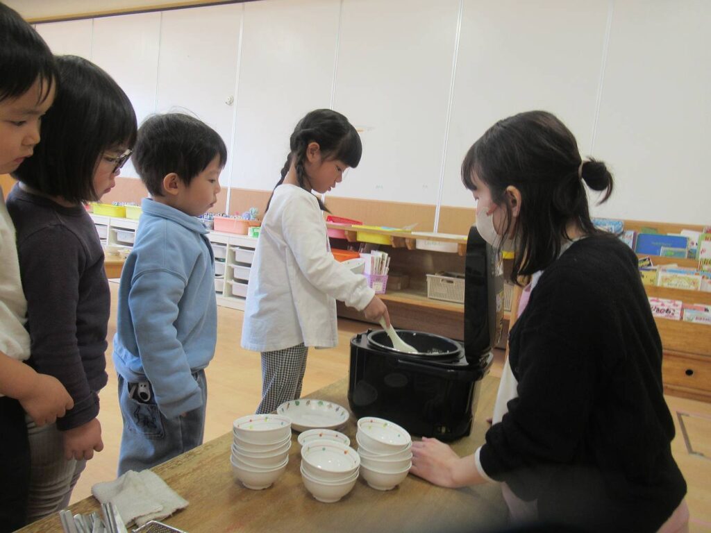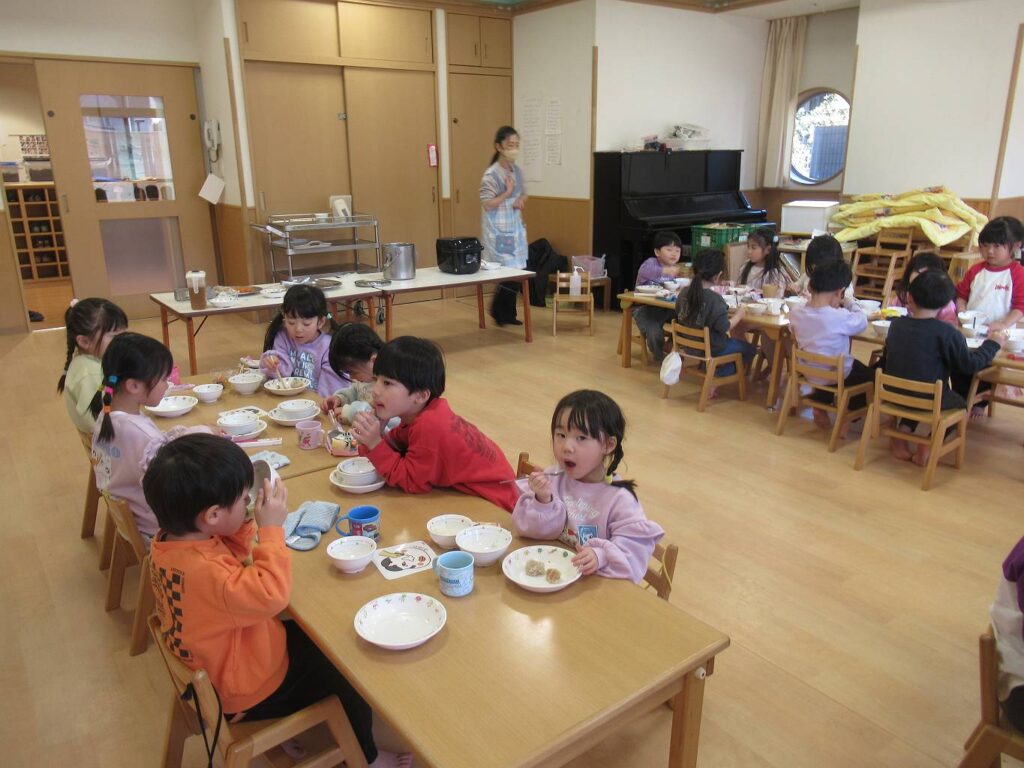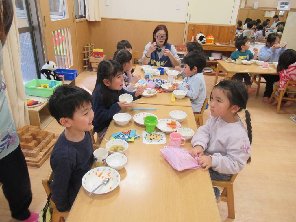 幼児クラス異年齢のグループで一緒に食べました。