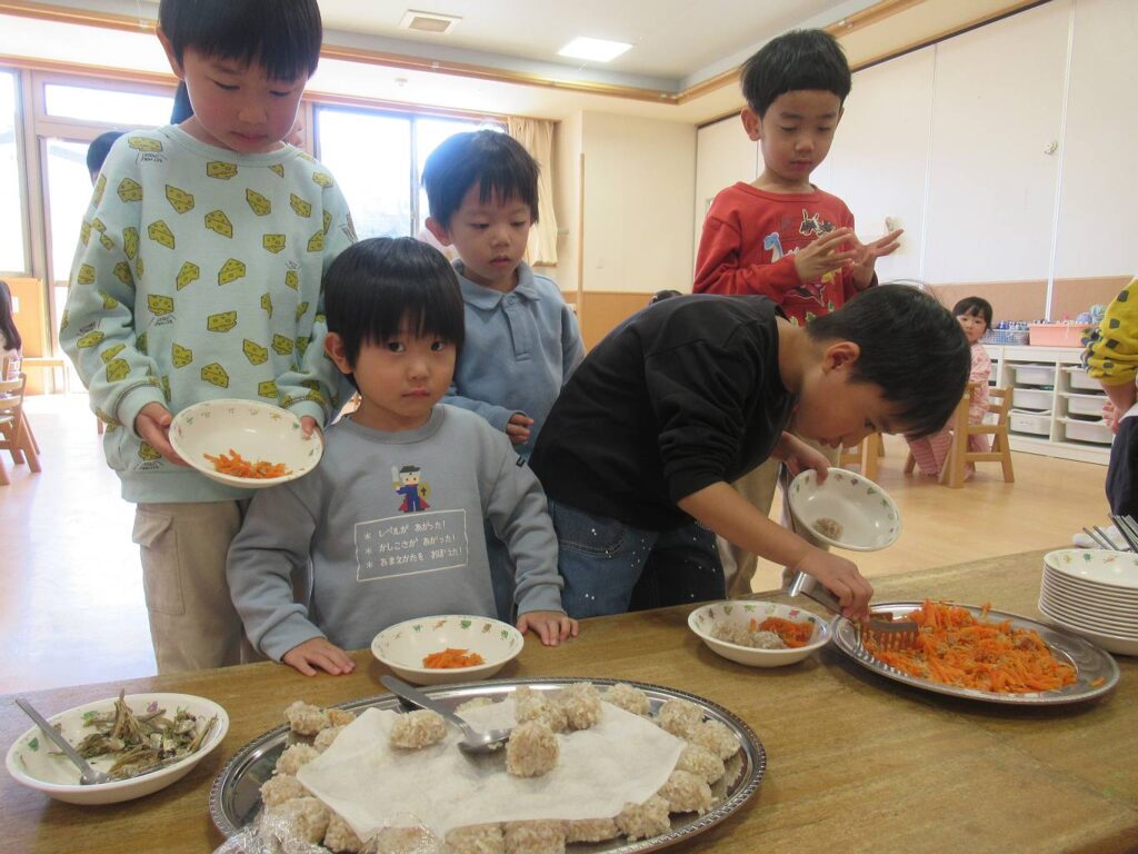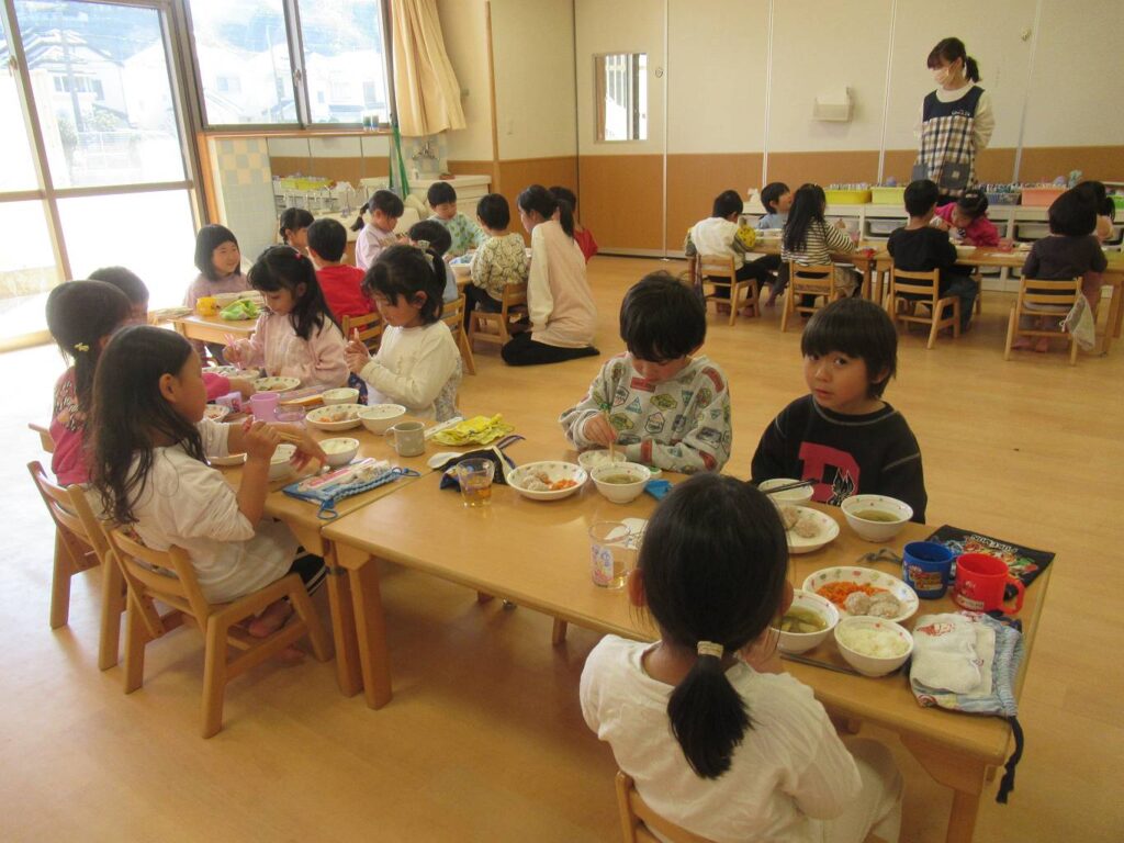 たくさん遊んでから給食の時間