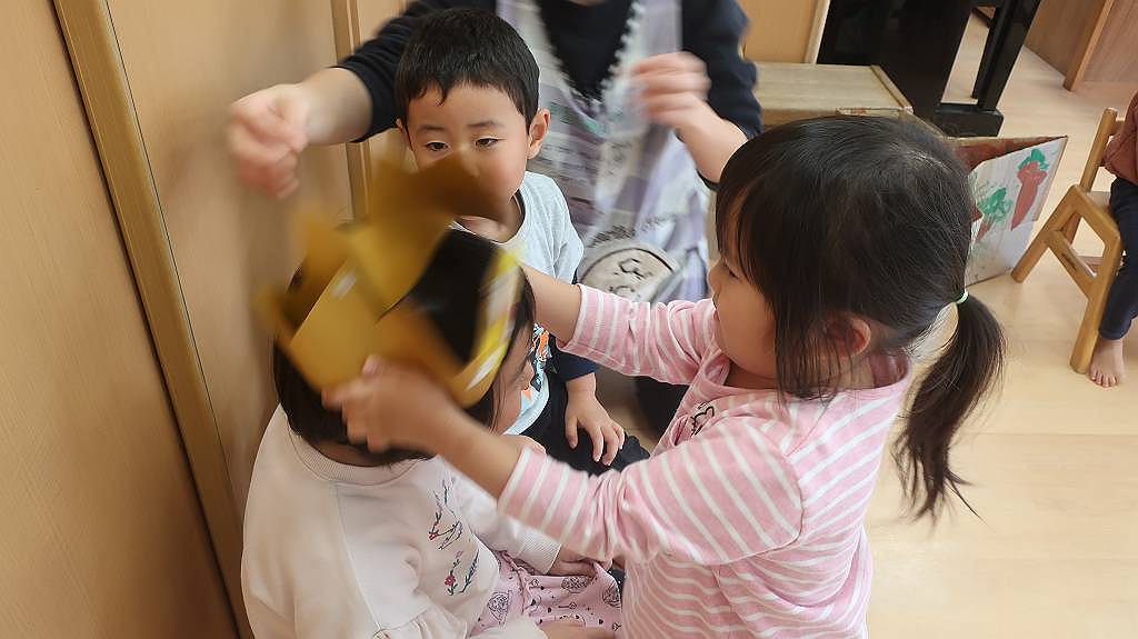 冠が気に入って今日一日お昼寝以外は嬉しそうに被る